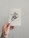 Printed on a vintage letterpress printing machine from the late 1800s. This image started off as a linoleum block that I carved and then turned into a polymer plate so that I could print it on my press.